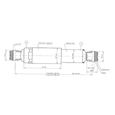 Sort, cylindrisk støddæmper med monteringspunkter i begge ender til køretøjsophæng.