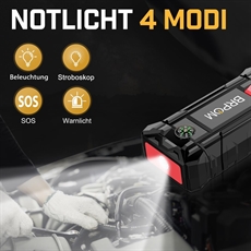 • Inkluderet: Jumpstarter, startkabler, USB-kabler, opbevaringstaske