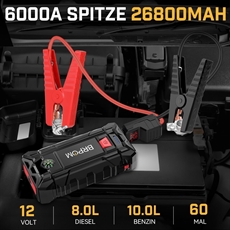 Med en kraftfuld spidsstrøm på 6000A kan BRPOM BM300 starte alle benzin- og dieselmotorer op til 10,0L. Den robuste powerbank på 26.800 mAh sikrer op til 60 opstarter på én opladning, så du aldrig står hjælpeløs med en afladt bil. De 8 integrerede beskyttelsesteknologier garanterer sikker brug, selv under stressede forhold ved vejsiden. LED-lommelygten med 4 tilstande, inklusive SOS-signal, øger din sikkerhed i mørket. Enheden fungerer pålideligt i temperaturer fra -20°C til 60°C, hvilket gør den driftssikker året rundt. Med USB-porte og Type-C-tilslutning kan du også oplade dine mobile enheder på farten.