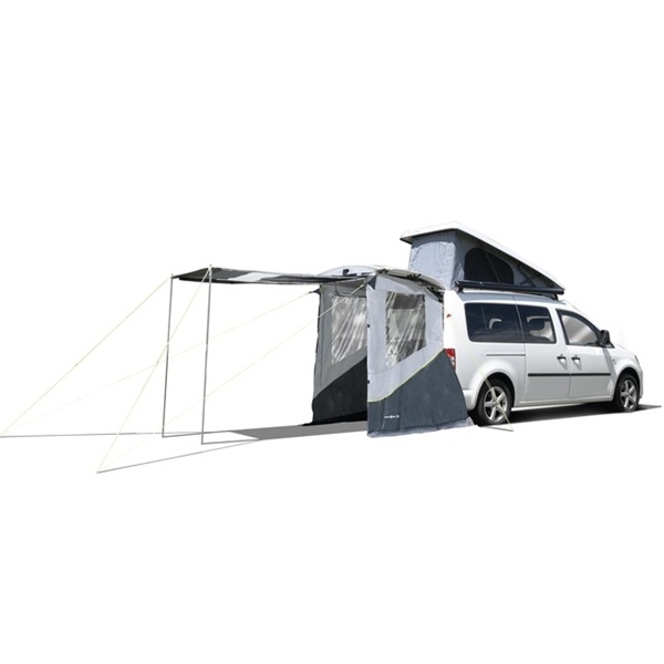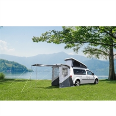 Dette specialdesignede hæktelt passer præcist til din VW Caddy 5. Med et vandsøjletryk på 3.000 mm holder teltet dig tør under skiftende vejrforhold. Den fleksible frontvæg kan rulles op eller bruges som solsejl.