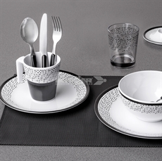 Dette 16-delte servicesæt til 4 personer kan vaskes i opvaskemaskine, hvilket sparer dig tid på oprydningen efter måltider. Sættet inkluderer middagstallerkener med en diameter på 25 cm til hovedretter, desserttallerkener på 20 cm til afslutningen af måltidet, og suppetallerkener på 21 cm. Det prikkede mønster i hvide og sorte farver skaber en stilfuld atmosfære ved daglige familemåltider og imponerer gæster ved middagsselskaber.