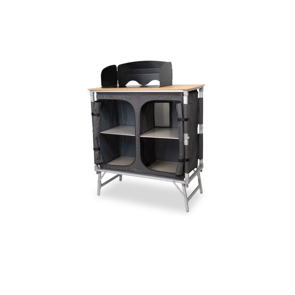• Inkluderet: Køkkenbord, vindskærm og opbevaringshylder