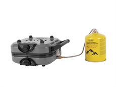 Dette fritstående komfur med to brændere vejer kun 2,8 kg, hvilket gør det let at transportere til campingpladsen eller festivalen. Den lille pakningsstørrelse på 21,5 x 12,7 x 27,5 cm og det praktiske håndtag betyder, at du nemt kan pakke det sammen med dit øvrige udstyr. Med 2 gryderister og 1 grillplade får du fleksibilitet til at lave forskellige måltider – fra morgenmad til aftensmad.