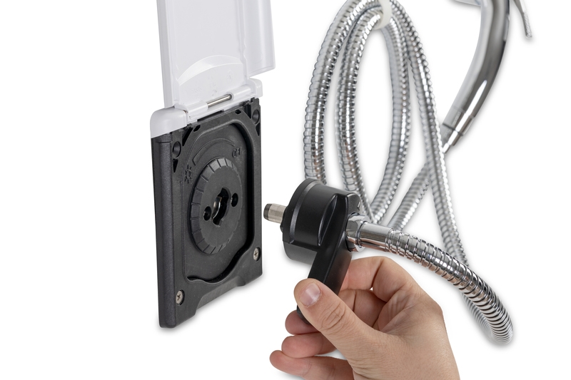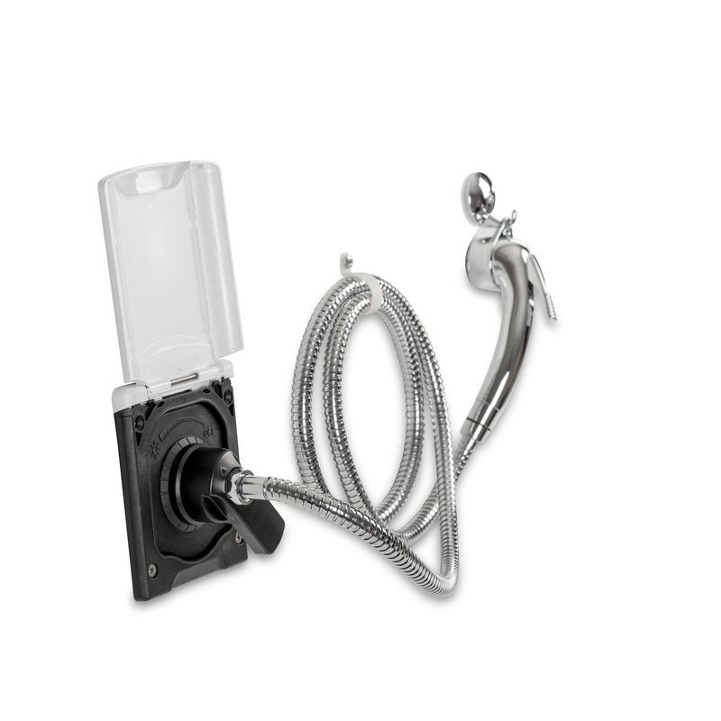 • Inkluderet: serviceklap, bruserhoved, slange og ophængningskrog
