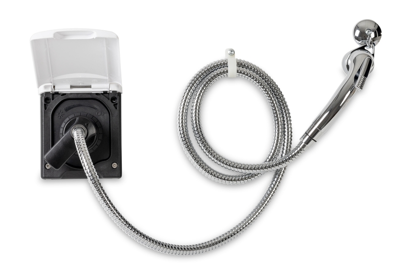 Dette vandudtag kombinerer en integreret mixer til koldt og varmt vand med en 150 cm fleksibel metalslange og bruserhoved. Vandtemperaturen justeres nemt ved at dreje på temperaturregulatoren, hvilket giver dig behageligt tempereret vand uanset vejrforhold – fra varme sommerdage til køligere campingture. Den lange bruserslange giver frihed til at skylle mudder af støvler eller vaske dig selv efter en dag i naturen.