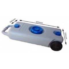 Denne mobile spildevandstank er udstyret med hjul og et ergonomisk håndtag, der gør det nemt at transportere den mellem forskellige lokationer på byggepladsen eller eventområdet. Med en kapacitet på 35 liter er den ideel til midlertidige sanitære faciliteter, og de kompakte mål sikrer nem placering selv i trange områder.