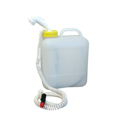Sættet består af: Justerbart (kontinuerligt/impuls) bruserhoved, 20 l vandbeholder, 12 Volt pumpe med cigaretstik, 4 m. spiralformet strømkabel og 2 m. bruserslange.