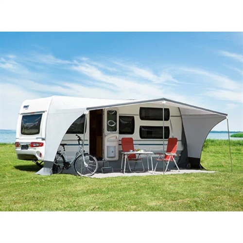 DWT Solsejl - Flair Vario Modul kan skabe et skyggefuldt område til campinglivet. Med en tagdybde på ca. 240 cm kan dette solsejl tilbyde tilstrækkelig dækning til forskellige behov. Farvede sidevægge kan bestilles separat for at skabe en personlig læskærm.