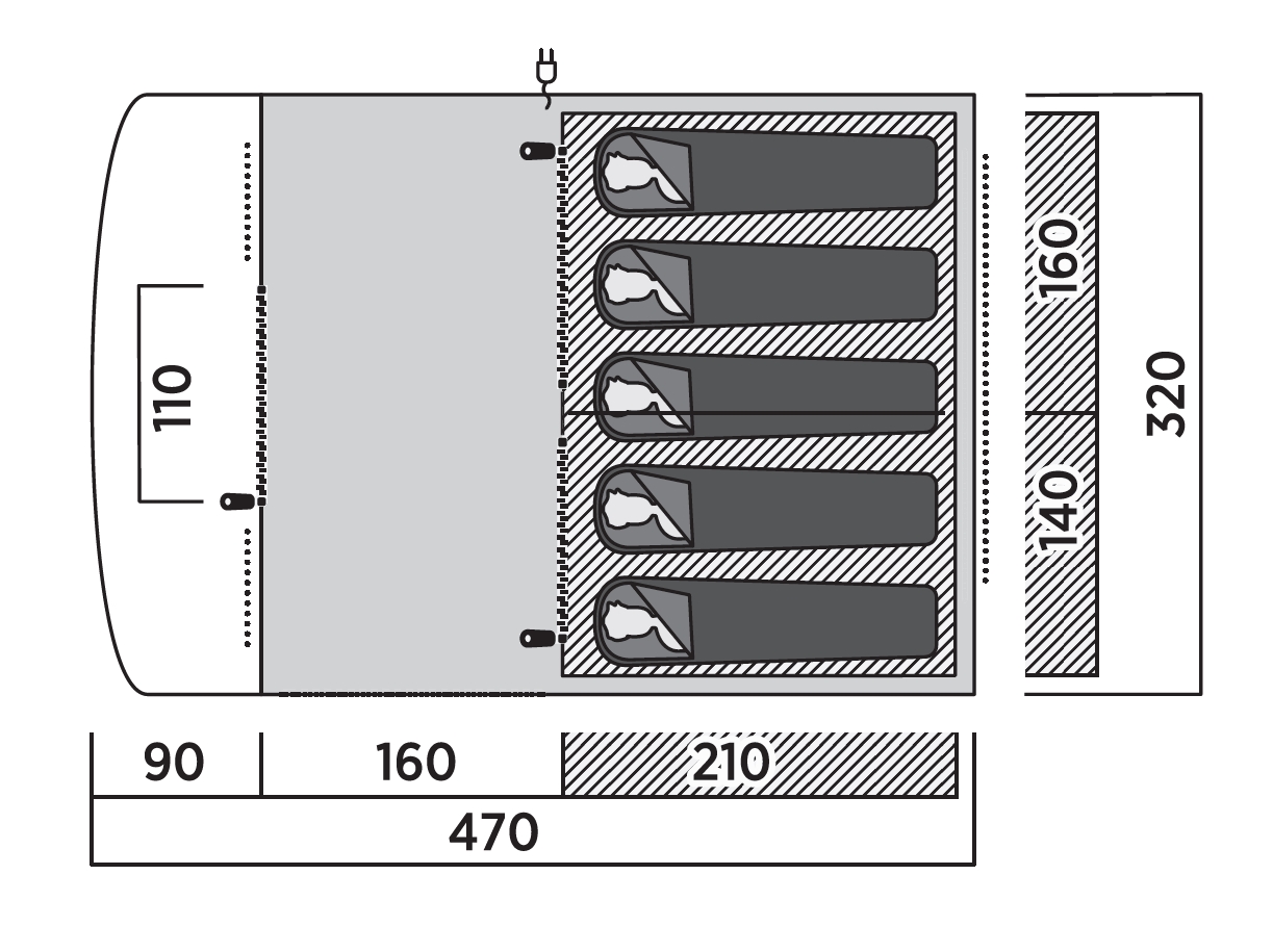 Brimnes 5 Air er et tunneltelt til fem personer med to kabiner og et stort opholdsrum, der giver komfort til familier eller grupper på camping, festivaller eller spontane ture. Dette familietunneltelt har et rummeligt opholdsområde med overdækket indgang og god ståhøjde. De næsten lodrette sidevægge giver ekstra meget plads god bevægelsesfrihed i familietelte. Brimnes 5 Air kan sættes op på 8-16 minutter takket være de hurtigt oppustelige luftkanaler, hvilket reducerer stress og iratation ved ankomst på campingpladsen eller festivalen.