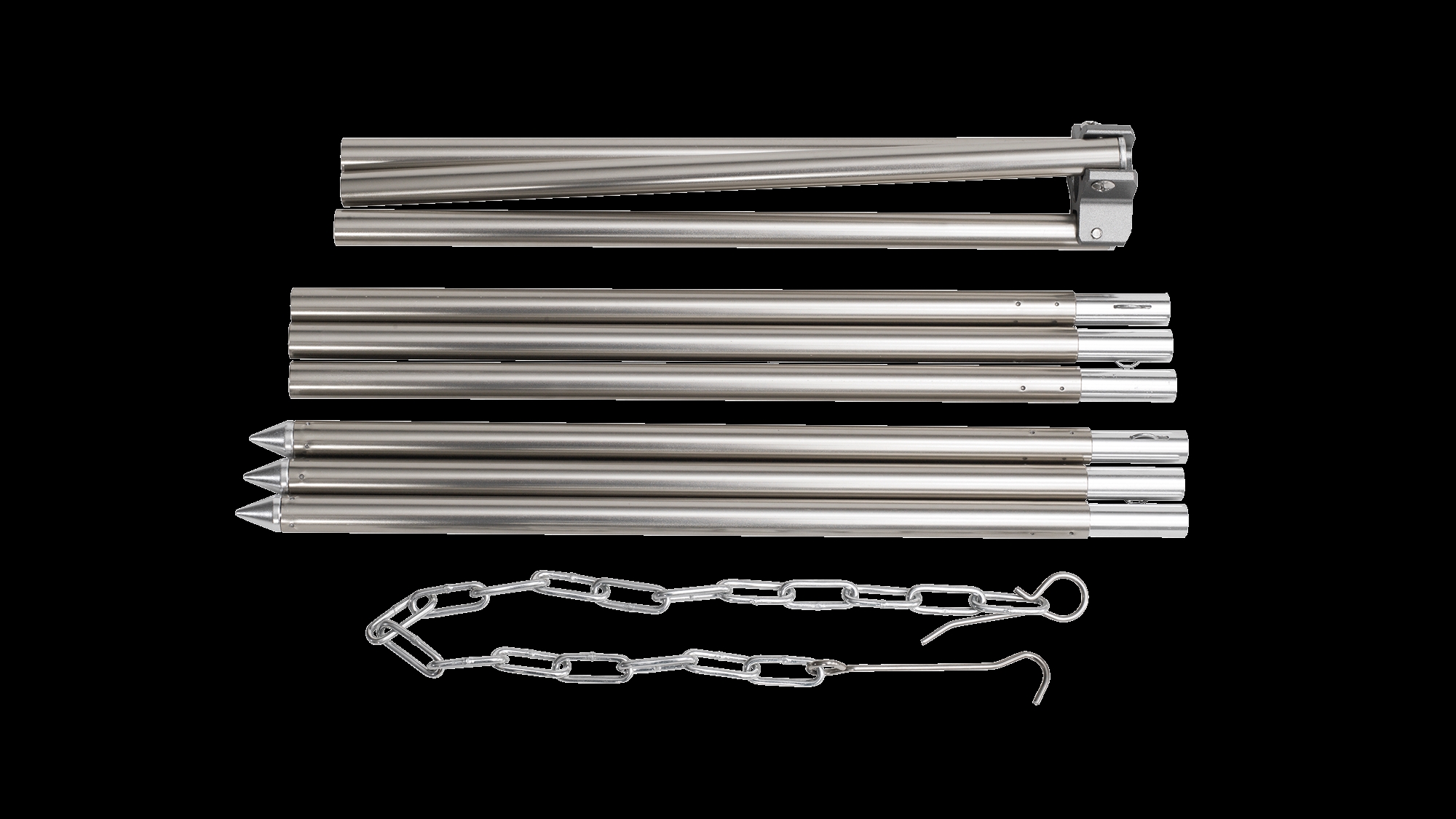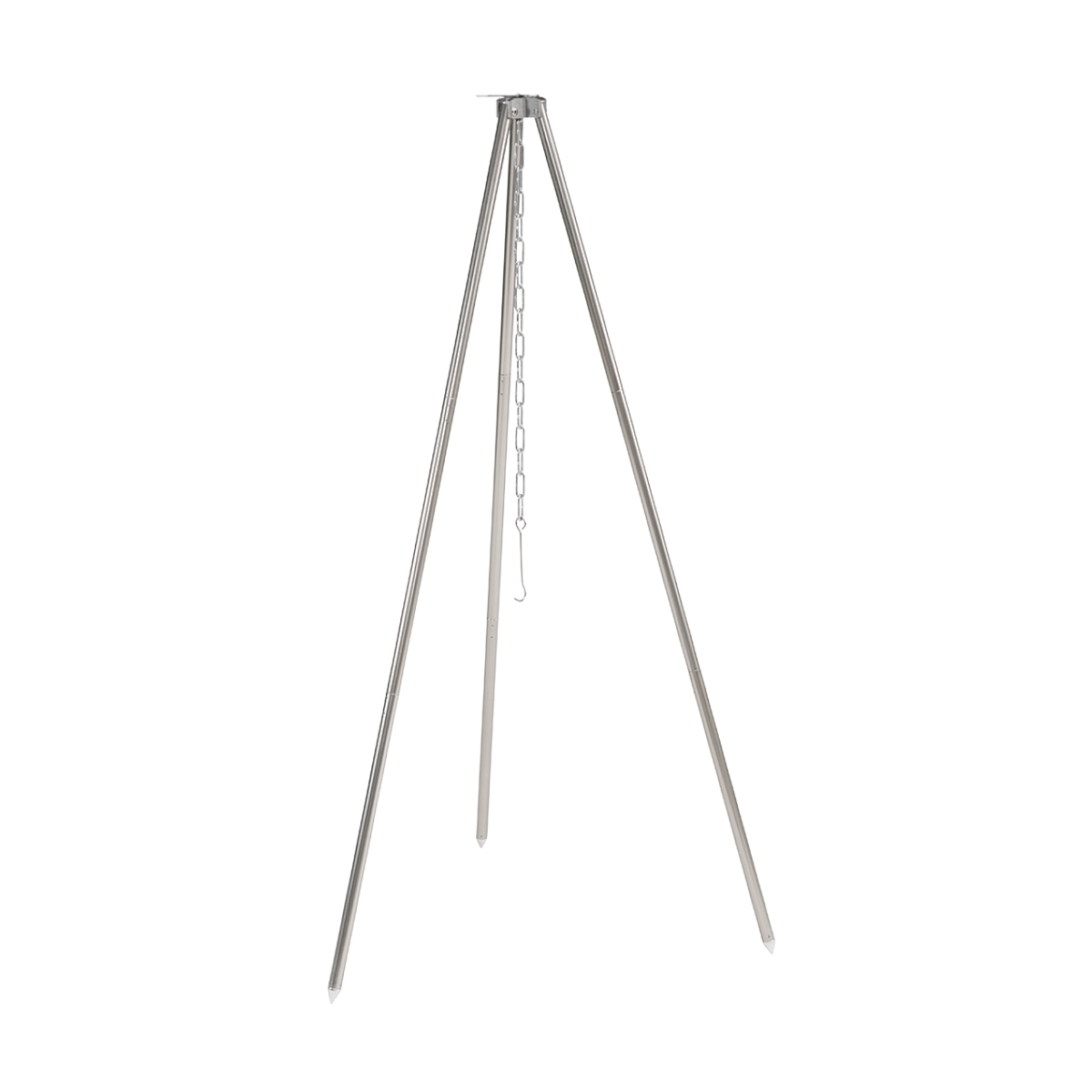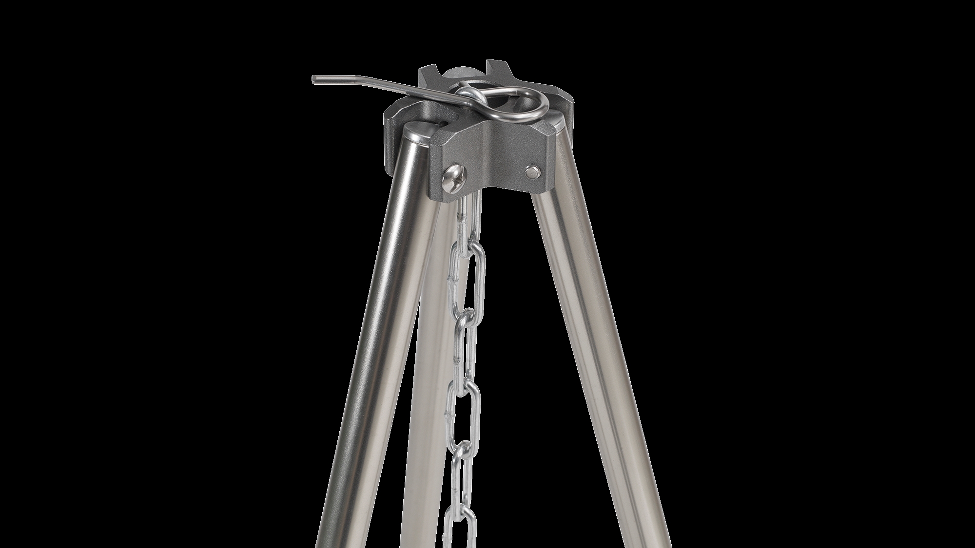 Stativet måler 116 cm i højde, hvilket giver god afstand mellem ilden og gryden. Du kan justere madlavningshøjden ved at ændre kædelængden - det giver dig kontrol over temperaturen under madlavningen. Benene er todelt og et Klik-lås-systemet gør samlingen nem, selv efter en lang dag i naturen. Når du pakker sammen, fylder stativet 50 x 15 x 5 cm i den medfølgende bæretaske.