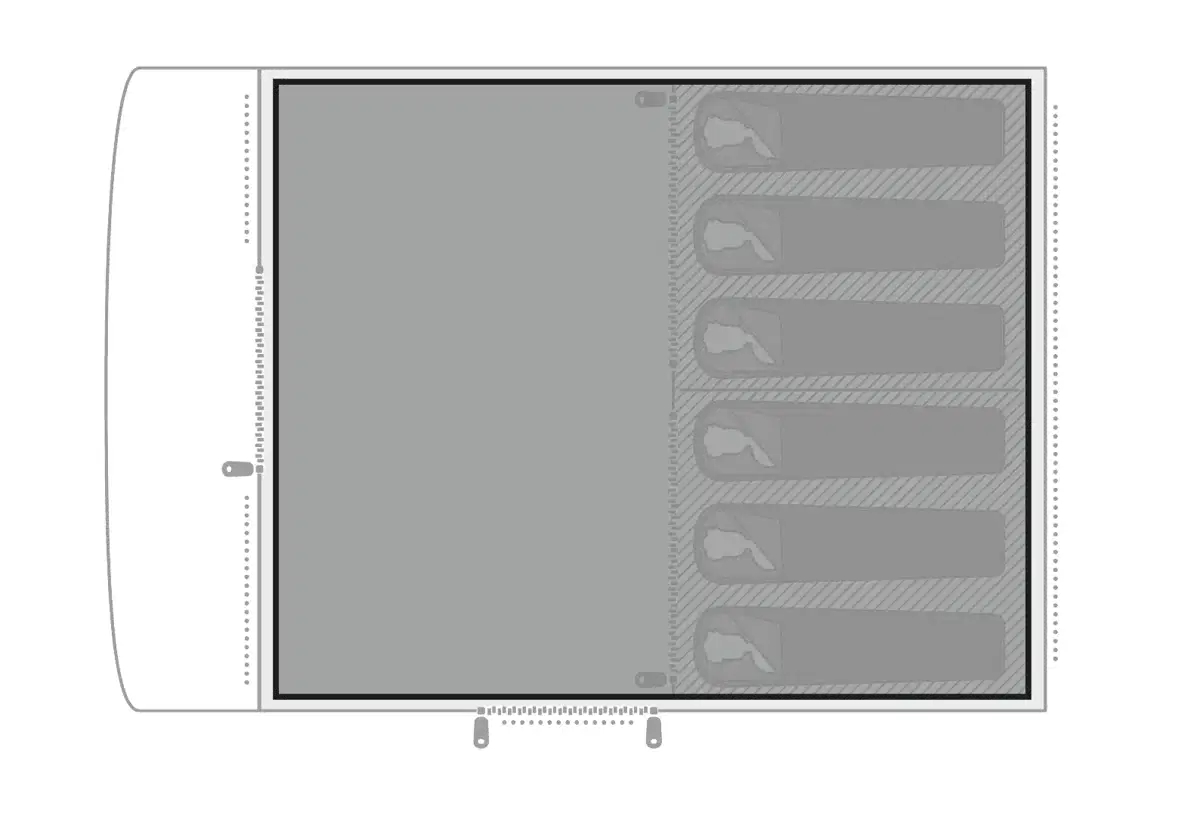 Dette teltunderlag er designet specifikt til Skarvan 6 og Romsdal 6 telte. Profildesignet matcher nøjagtigt teltets bund, hvilket sikrer, at underlaget forbliver på plads og beskytter mod slid under campingturen. Polyethylenmaterialet er vandafvisende og holder teltbunden tør og ren, selv når jorden er fugtig. Med en størrelse på 440 x 360 cm dækker det hele teltbunden, så du slipper for bekymringer om fugt og snavs.