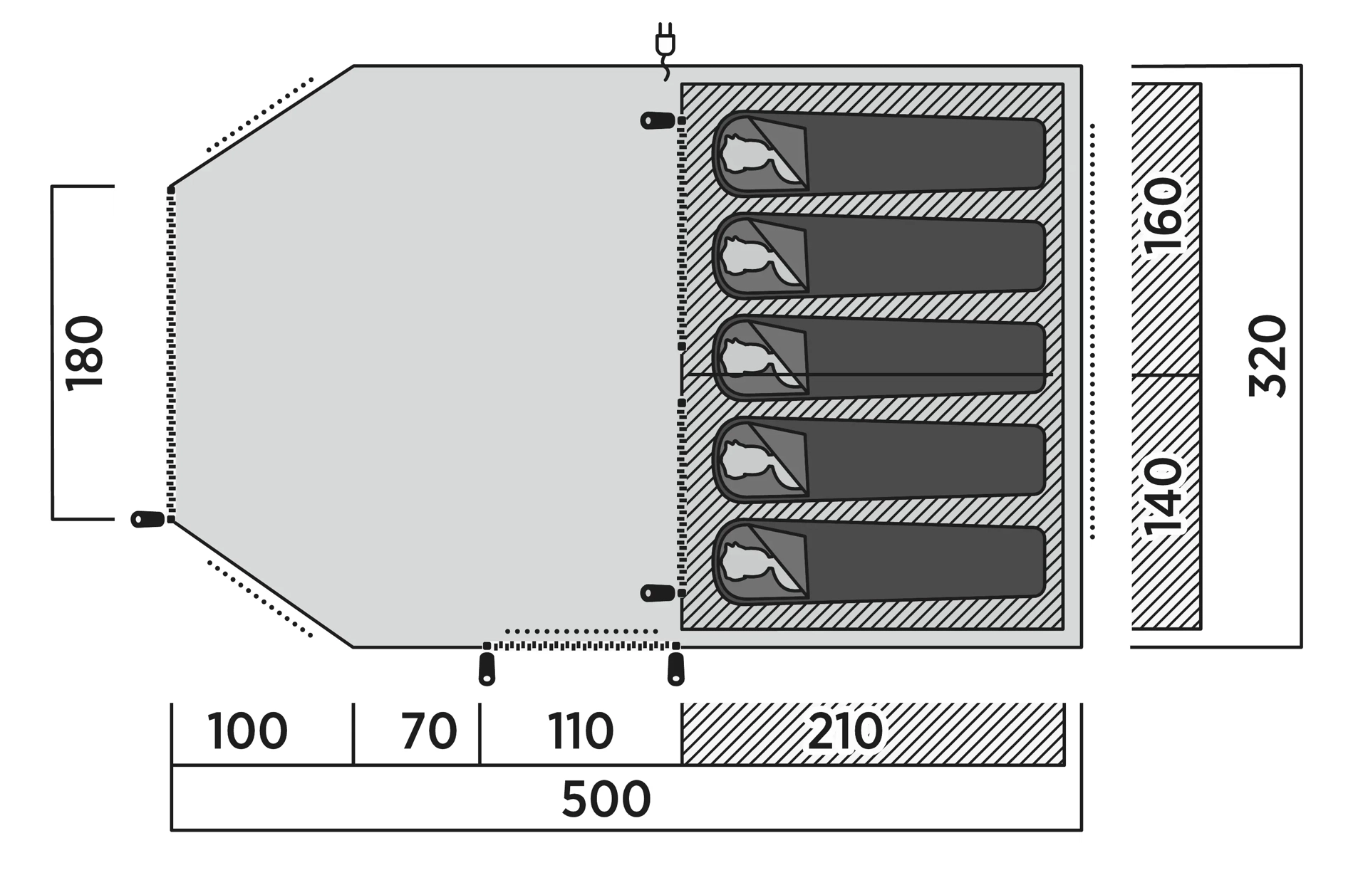 • Ekstra: Klargjort til strømkabel-gennemføring i teltside