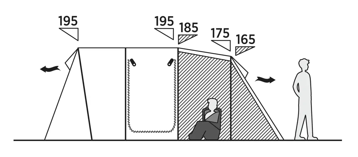 Når fem personer skal dele telt, opstår behovet for både fællesrum og privatliv. På en familieweekend vil forældre og børn have forskellige søvnrytmer. På festivaler kan gruppen have brug for at skifte tøj eller hvile uden at forstyrre hinanden. Teltet løser dette med to sovekabiner adskilt af en aftagelig skillevæg og et separat opholdsrum med ståhøjde, så man kan bevæge sig uden at kravle rundt.