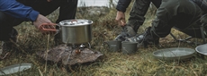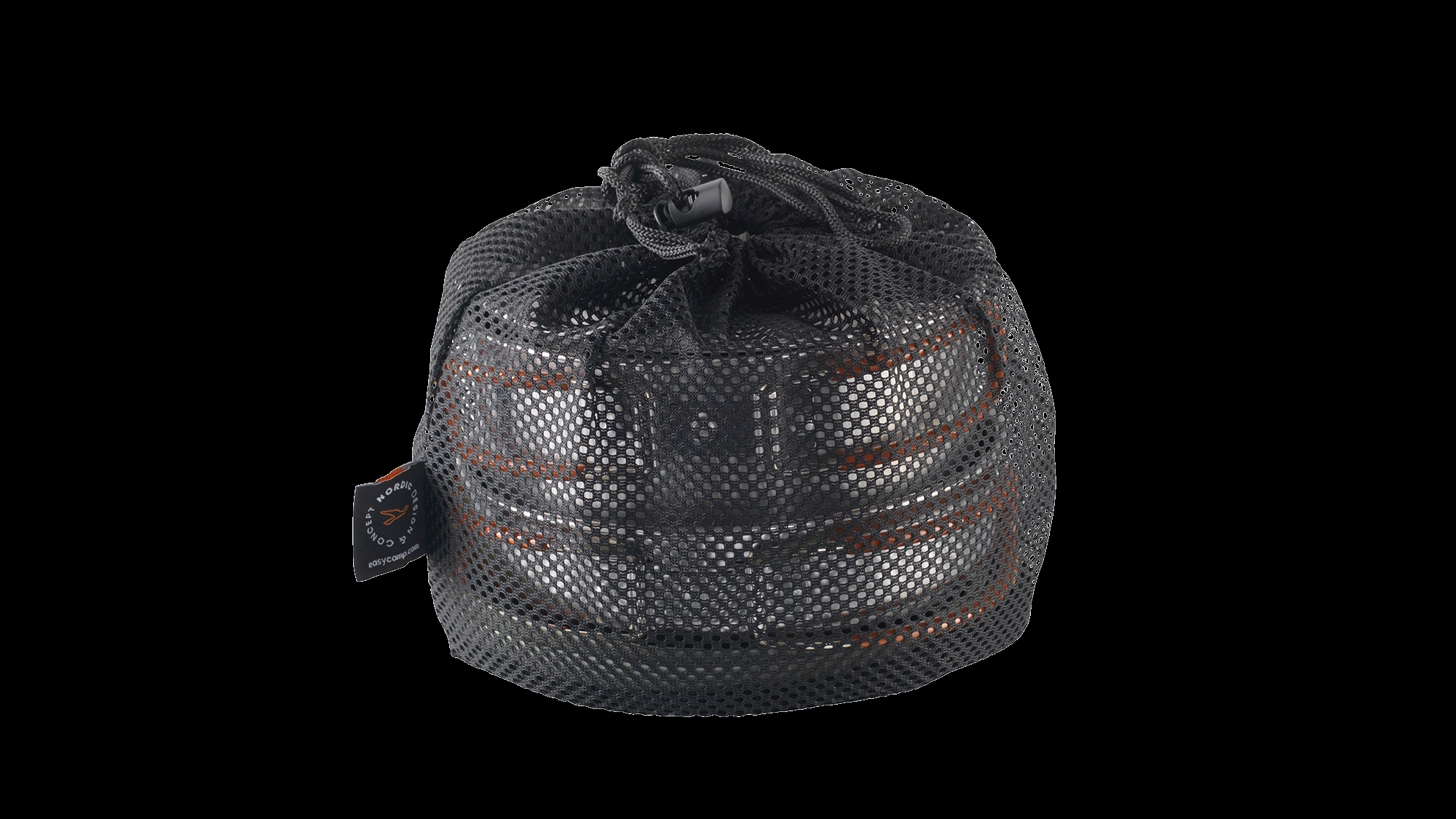 Det stabelbare design er en stor fordel, når pladsen er begrænset i rygsækken. Alle delene passer sammen i en kompakt enhed, og den medfølgende mesh-bæretaske gør transporten nem. Silikonebeskyttelsen på håndtagene sikrer sikker håndtering, selv når gryden er varm efter madlavning ved lejrbålet.