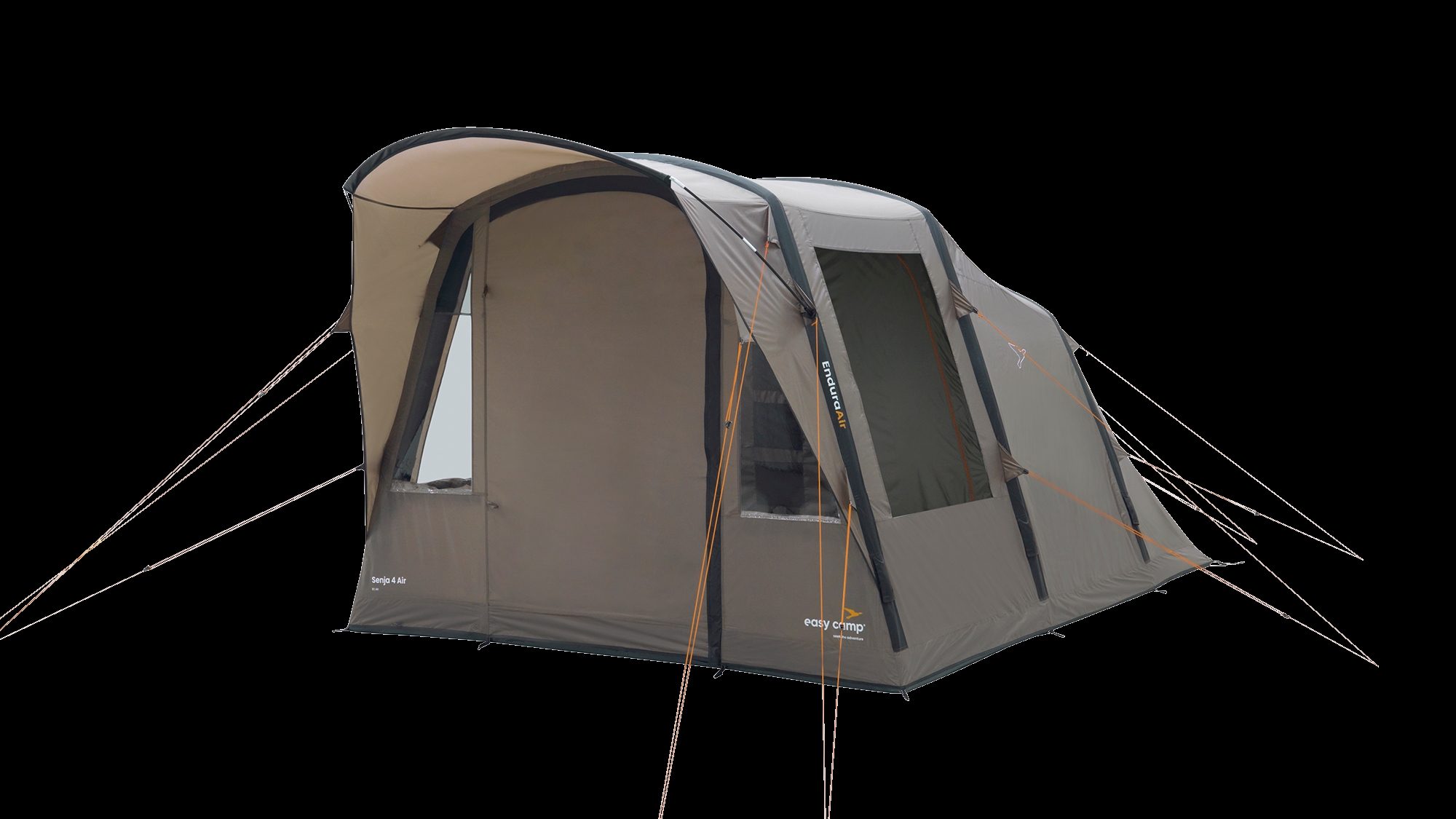 Easy Camp Senja 4 Air Familietelt adskiller sig ved sin opsætningstid på kun 6 minutter til umiddelbar brug og 12 minutter til komplet opsætning. Dette lufttubesystem fjerner behovet for traditionelle stænger og reducerer den fysiske anstrengelse ved ankomst til campingpladsen. Den indsyede bund holder fugt, træk og insekter ude gennem hele natten, hvilket betyder færre afbrydelser i søvnen. Teltet har to separate sovekabiner og en opholdsstue med stå højde på 190 cm. så familier kan bevæge sig naturligt indendørs uden at skulle krybe eller bukke sig. De forformede lufttuber skaber en imponerende loftshøjde og indvendig plads sammenlignet med traditionelle telte i samme vægtklasse på 14,1 kg. Vandsøjletrykket på 3000 mm med tapede sømme giver beskyttelse mod regn under skiftende vejrforhold.