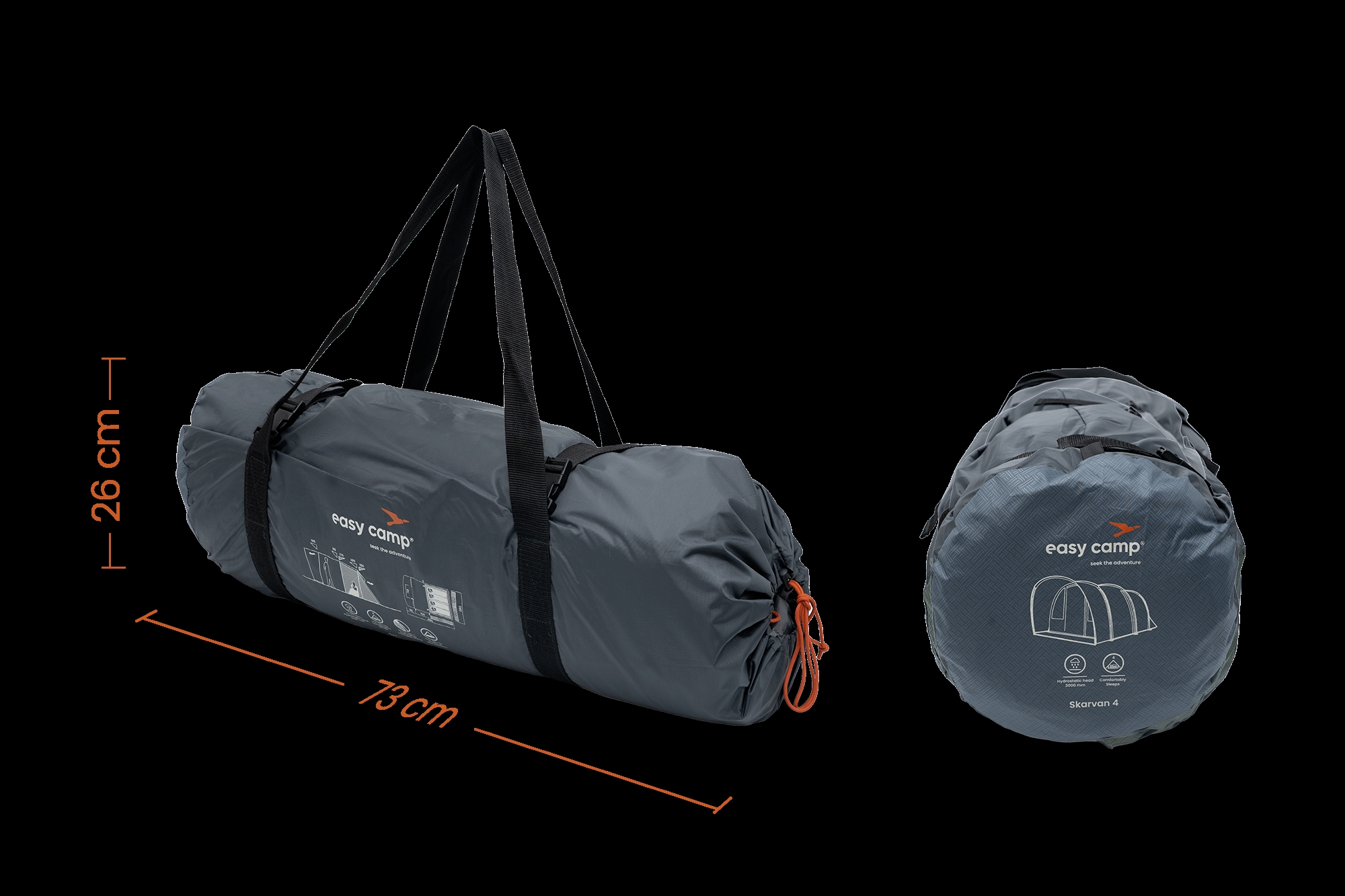 Skarvan 4 er et tunneltelt designet til familier, der har brug for pålidelig beskyttelse under campingturen. Med en høj vandtæthed på 3000 mm sikre Easy Camps WeatherGuard 3000 og det kraftige 190T polyester med PU-belægning at regn og fugt holdes ude, selv under uforudsigeligt skandinavisk vejr. Teltet indeholder 2 soveværelser og 1 opholdsrum med aftagelig skillevæg, hvilket giver privatliv til både børn og voksne. Materialerne består af åndbar polyester og bunden dobbeltbelagt vandtæt polyethylen, der sikrer holdbarhed gennem mange sæsoner. God ståhøjde i opholdsområdet gør det nemt at bevæge sig rundt og skifte tøj efter en lang dag ude i naturen.