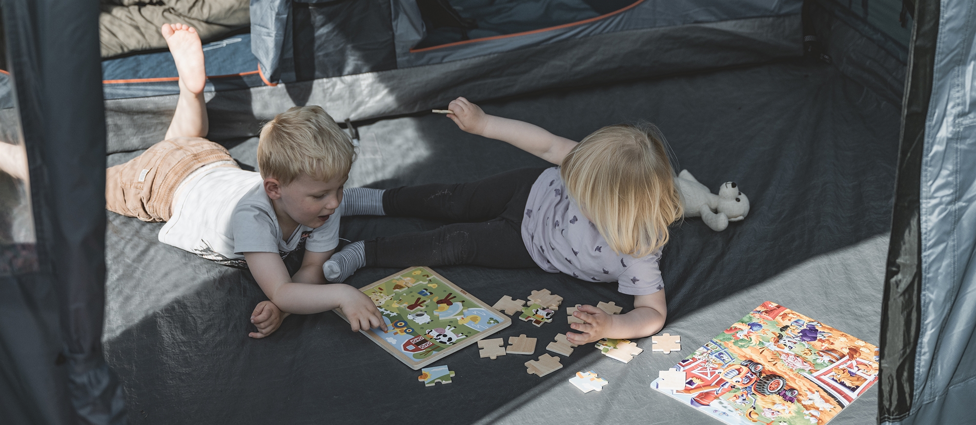 Kombinationen af åndbar polyester og dobbeltbelagt vandtæt polyethylen i gulvet sikrer, at teltet kan modstå både regn og slid gennem mange campingture. Materialerne arbejder sammen om at holde familien tør, mens den åndbare konstruktion forhindrer kondens. Den aftagelige skillevæg mellem opholdsrum og soveværelser giver fleksibilitet til at tilpasse indretningen efter familiens behov. Reparationssættet giver mulighed for hurtige løsninger ved mindre skader, så campingturen kan fortsætte uden afbrydelser.
