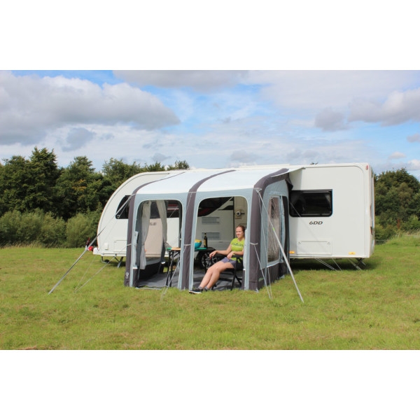 EVORA 260 Pro Climate, Luftfortelt er løsningen for campister, der ønsker at slippe for besværet med tunge stænger. Dette oppustelige lufttelt stilles op på ganske kort tid takket være dets innovative design. Det åndbare materiale er designet til at reducere kondens og bidrage til et behageligt indeklima. Store vinduespartier giver et lyst og indbydende miljø, mens begge sidedøre er udstyret med myggenet for optimal ventilation. Gardiner er inkluderet som standardudstyr, og de store aftagelige front- og sidepaneler giver fleksibilitet til at tilpasse teltet efter behov.