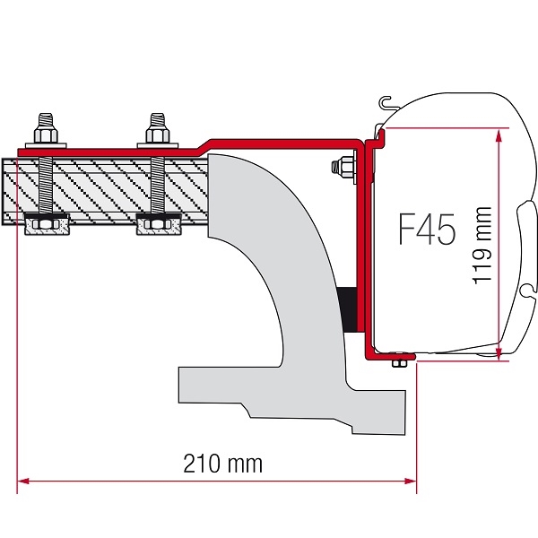 Beslag til montering af F45 markiser på MB Vito produceret til og med 2004.