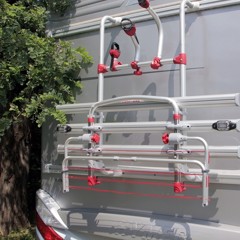 Smart nyt tørrestativ, der let monteres på et cykelstativ bagerst på en campingvogn eller autocamper.
