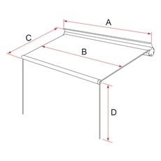 Mål: A: 273 B: 254 C: 225 D: 225 cm.