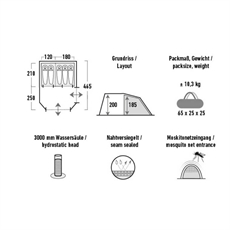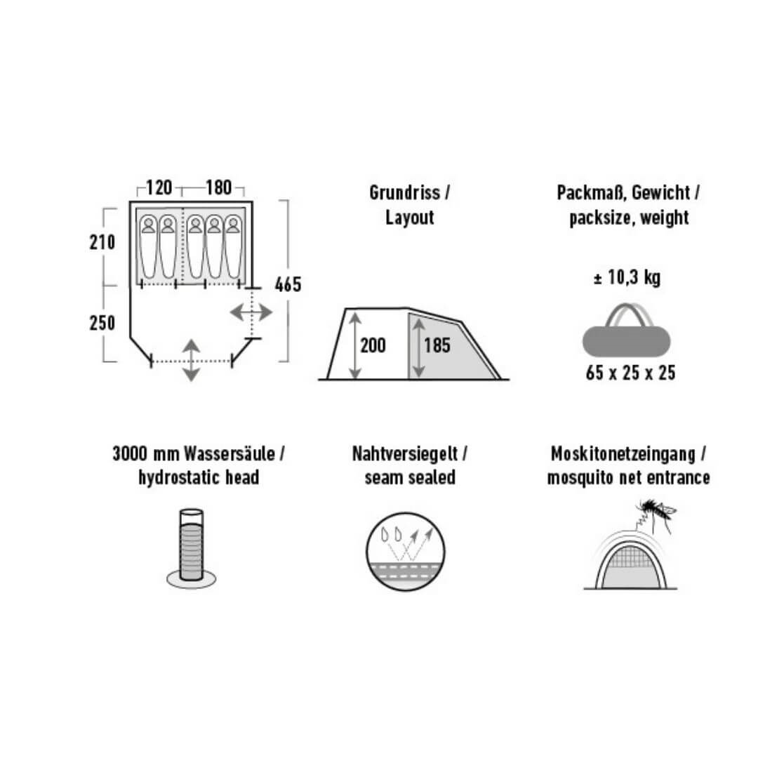 Mange familier kender til problemet med trange telte, hvor man ikke kan stå oprejst, våde soveposer efter regn eller dårlig ventilation, der skaber kondens. Frihøjden på 185-200 cm løser bevægelsesfriheden.