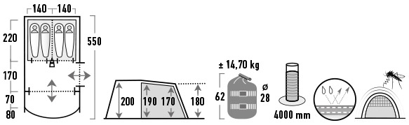 • Inkluderet i pakken: telt, stænger, stålpløkker, barduner, kompressionsbæretaske