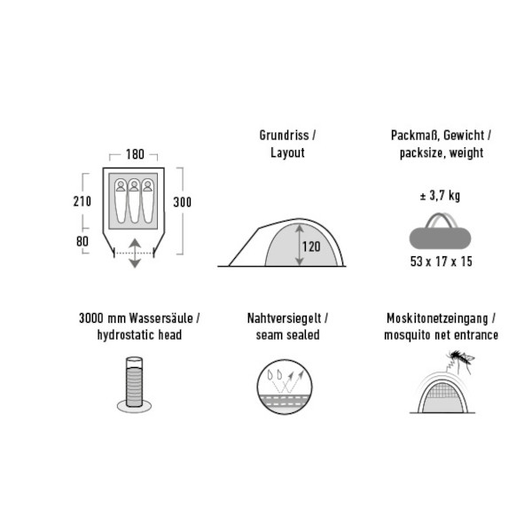 High Peak Nevada 3 er et klassisk iglotelt til tre personer i letvægtskvalitet med vandsøjletryk på hele 3000 mm.