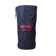 Cylindrisk stofpose med "HOT WOK TOP LINE" logo i rød og snørelukning øverst til gasflasker.
