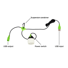 • Inkluderet: Lampe, USB-kabel og karabinhage