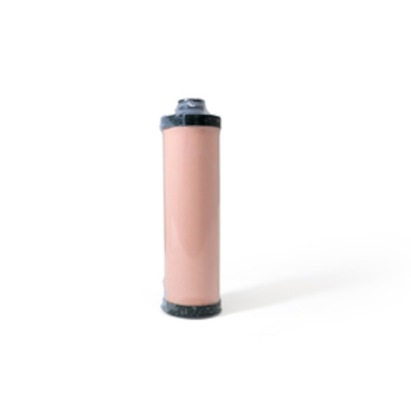 Cylindrisk filter med sorte ender og brun krop, beregnet til vandrensning.