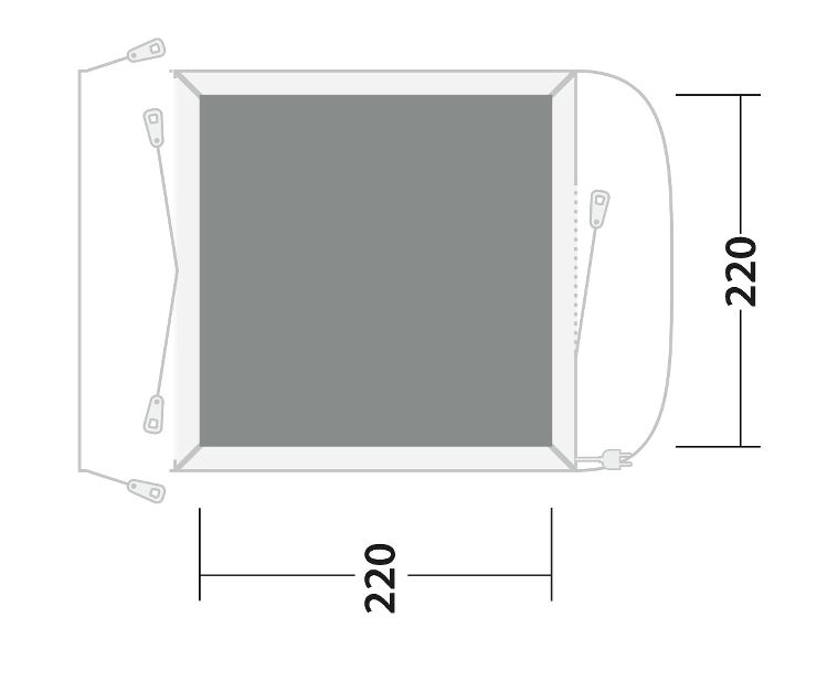 Det geometriske design passer ind i campingmiljøet og skjuler dagligt slid. De bløde, slidstærke materialer sikrer både komfort og holdbarhed gennem mange sæsoner. Hjørnefastgørelserne holder tæppet stabilt på plads, selv i blæsevejr, mens den kvadratiske form på 220 x 220 cm giver god dækning i forteltet. Materialet er nemt at holde rent og giver en behagelig overflade at gå på, mens de medfølgende fastgørelsesremme gør opbevaring enkel.