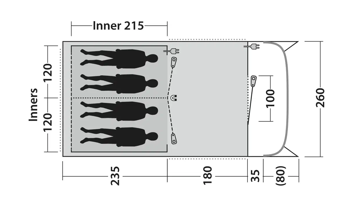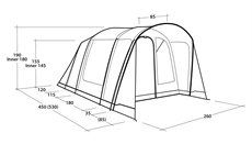 Unique integrated patent-pending Outwell Light System provides elegant and effective lighting inside the tent. Powered by any USB-C power source (power source not included)