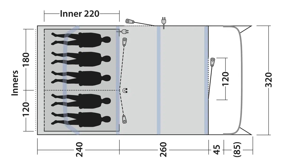 Lange opsætningstider efter lang dag i bilen kan være trættende, men luftsystemet reducerer dette til 9 minutter. Dårlig søvn i de lyse morgentimer løses med de mørklagte sovekabiner, der holder sollyset ude. Bekymringer om regnvejr håndteres af vandtætheden på 4000 mm, som holder teltet tørt, selv under kraftig regn. Overdækket for-område sikre læ og skygge.