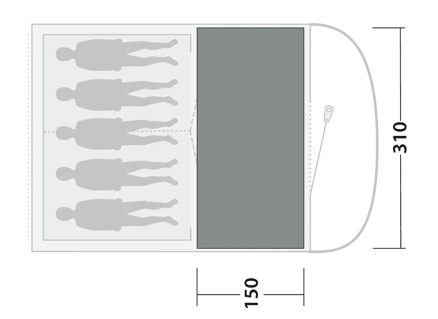 • Specialdesignet til Sky 5 teltmodel 150 x 310 cm