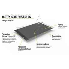 Forteltet vejer 23,1 kg og måler 78 x 37 x 41 cm sammenfoldet. Luftrørene giver god loftshøjde og rumfornemmelse med en tagtilslutningslængde på 250 cm. Frontvæggen kan åbnes helt eller delvist med netpanel bagved, hvilket giver fleksibilitet i forhold til ventilation og udsyn. Det højtydende Outtex 6000 Express RS-materiale med 6000 mm vandsøjletryk sikrer dig mod regn og fugt. Den syede bund holder insekter ude, mens UPF 30+ beskyttelsen værner mod solens stråler. HookTrack-systemet lader dig ophænge lys og udstyr op til 1,5 kg, og de forudmonterede lysende barduner gør opsætningen enkel. Forteltet har praktiske detaljer som kraftige, driftsikre lynlåse og en gulvdug med indbygget trækafskærmning.