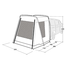 Dette fritstående bustelt giver dig ekstra plads og nem montering til fx din VW T5/T6/T6.1 eller MB W639/W447 eller lignende. Med et vandsøjletryk på 3.000 mm er det velegnet til længere ophold.