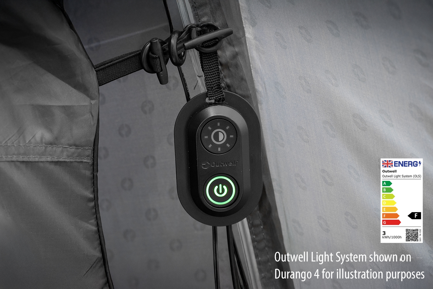 • Integreret Outwell Light System med justerbar belysning til aften (tilslut din egen powerbank)