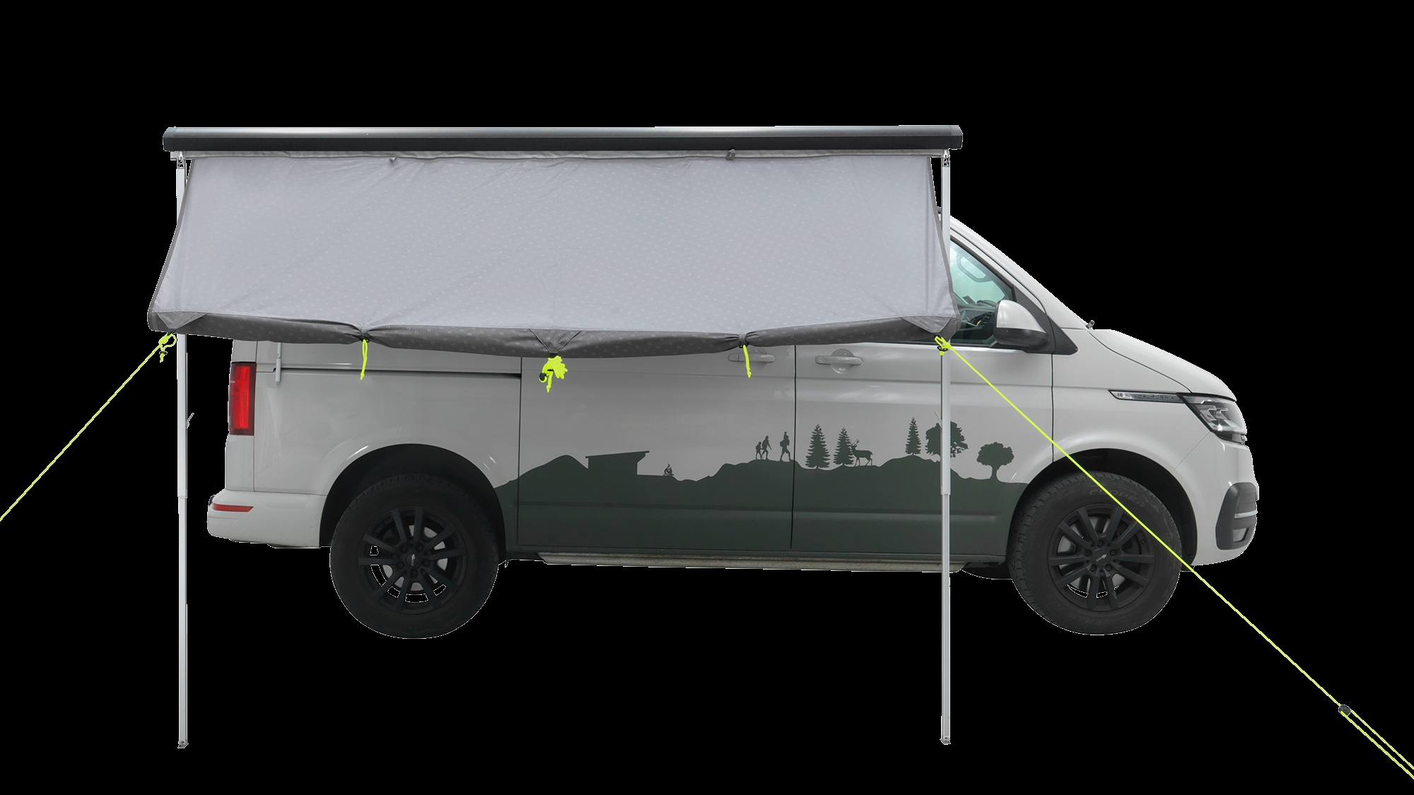 Hillcrest Tarp skiller sig ud ved at kombinere effektiv vejrbeskyttelse med praktisk fleksibilitet til campingvogne og campere. Med et vandsøjletryk på 4.000 mm sikrer solsejlet beskyttelse mod kraftig regn og holder brugerne tørre under skiftende vejrforhold. Vægten på kun 2,1 kg og den kompakte pakkestørrelse på 44 x 33 x 6 cm gør den nem at transportere og opbevare i køretøjet. Tarpen kan fastgøres til udtræks- og rullemarkiser som Thule 5200, Fiamma F45s og Dometic PW1500 eller monteres direkte på VW T5/T6 og Mercedes-Benz Vito eller andre biler med fast teltskinne vi den dobbelt vulst med både 5 og 7 mm. Den justerbare fastgørelseshøjde fra 155 til 300 cm gør den velegnet til forskellige vogne og køretøjer. Materialet i Outtex® 4000 Select-polyester sikrer holdbarhed, mens UV-beskyttelsen på UPF 30+ giver ekstra sikkerhed ved udendørs ophold. Vandafvisningen er PFAS-fri, hvilket gør tarpen til et miljøvenligt valg.