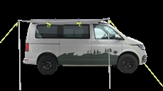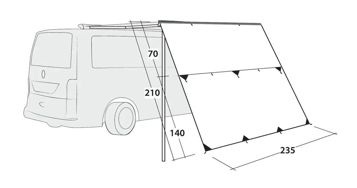 (260/270 x 200 cm): Thule 5200, Thule 5102, Thule Sidehill, Fiamma F43 Van, Fiamma F45s, Fiamma F45 VW T5/T6, Fiamma F45 PSA, Dometic PW1100 og Dometic PW1500.