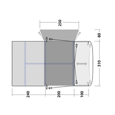 Dette drive-away fortelt er udviklet til langtidscamping ved kystnære områder. Den flytbare frontdør med insektnet og fire skydere giver dig fuld kontrol over ventilation og adgang. Den store baldakin skaber værdifuldt ekstra overdækket uderum, som du kan bruge til både opbevaring og ophold. Power Air System med apex-rør sikrer en nem opsætning og gør teltet stabilt i forskellige vejrforhold. To store sidedøre med insektnet giver god ventilation, mens HookTrack-systemet lader dig ophænge lys og udstyr op til 1,5 kg. Med et højt vandsøjletryk på 6.000 mm og UPF 30+ UV-beskyttelse holder teltet dig tør i selv kaftigt regnvejr og beskyttet mod solen. Outtex® 6000 Express RS polyester materialet og den dobbeltbelagte vandtætte polyethylen bund gør teltet holdbart. Tilslutningshøjden på 175-200 cm passer til de fleste campingvogne, og med en vægt på 30,6 kg og pakkemål på 79 x 44 x 42 cm er teltet nemt at transportere.