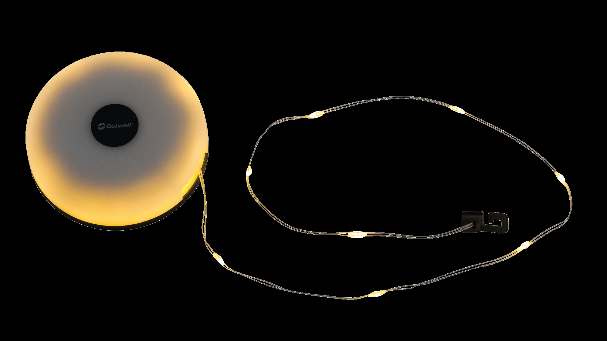 Outwell Moonstone Stringlight Lantern kombinerer en kraftfuld lanterne med en 10 meter lang udtrækkelig lyskæde. Med seks forskellige lysindstillinger kan du nemt tilpasse belysningen til dine behov - fra praktisk arbejdslys med 250 lumen til stemningsfuld belysning. Den robuste konstruktion er støv- og stænktæt, mens det genopladelige 1500 mAh batteri sikrer lang driftstid. Brug den stående eller ophængt med den indbyggede krog, mens 24 LED'er fordeler lyset jævnt i dit campingområde.