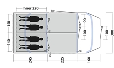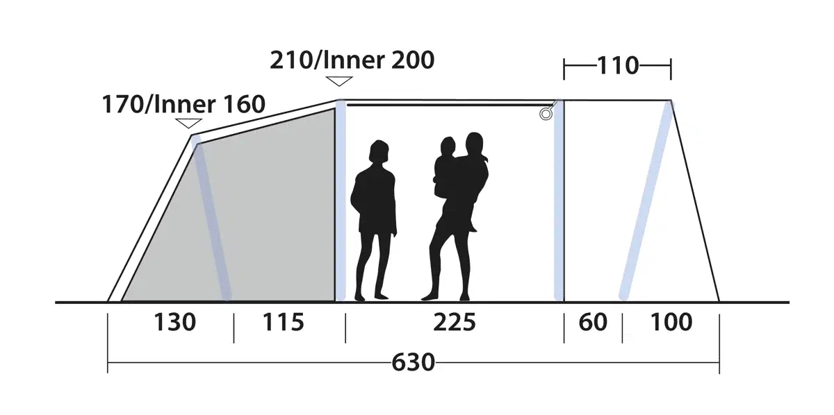 The Outwell Sacramento 4 Air offers a spacious and comfortable camping experience for families up to four. Quickly pitched with an optimized design to keep weight and packed size down. Create your ideal space with flexible options. Roll the door and windows aside for better views, and open the inner door two-thirds to extend the living area. The two bedrooms with Dark Inners ensure a restful night’s sleep. A perfect balance of comfort and functionality for your camping trip.