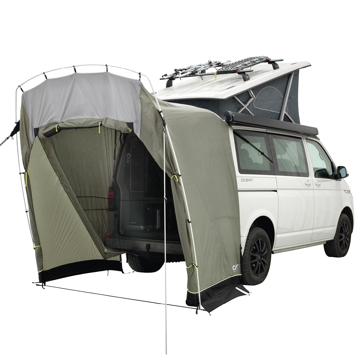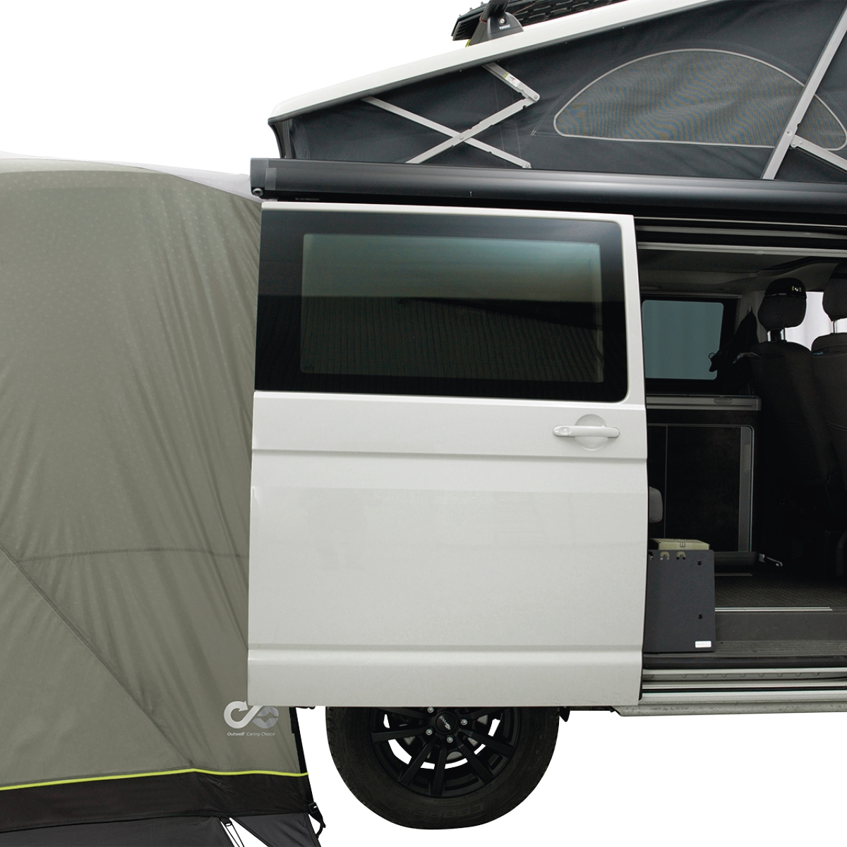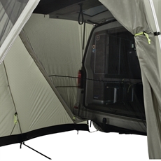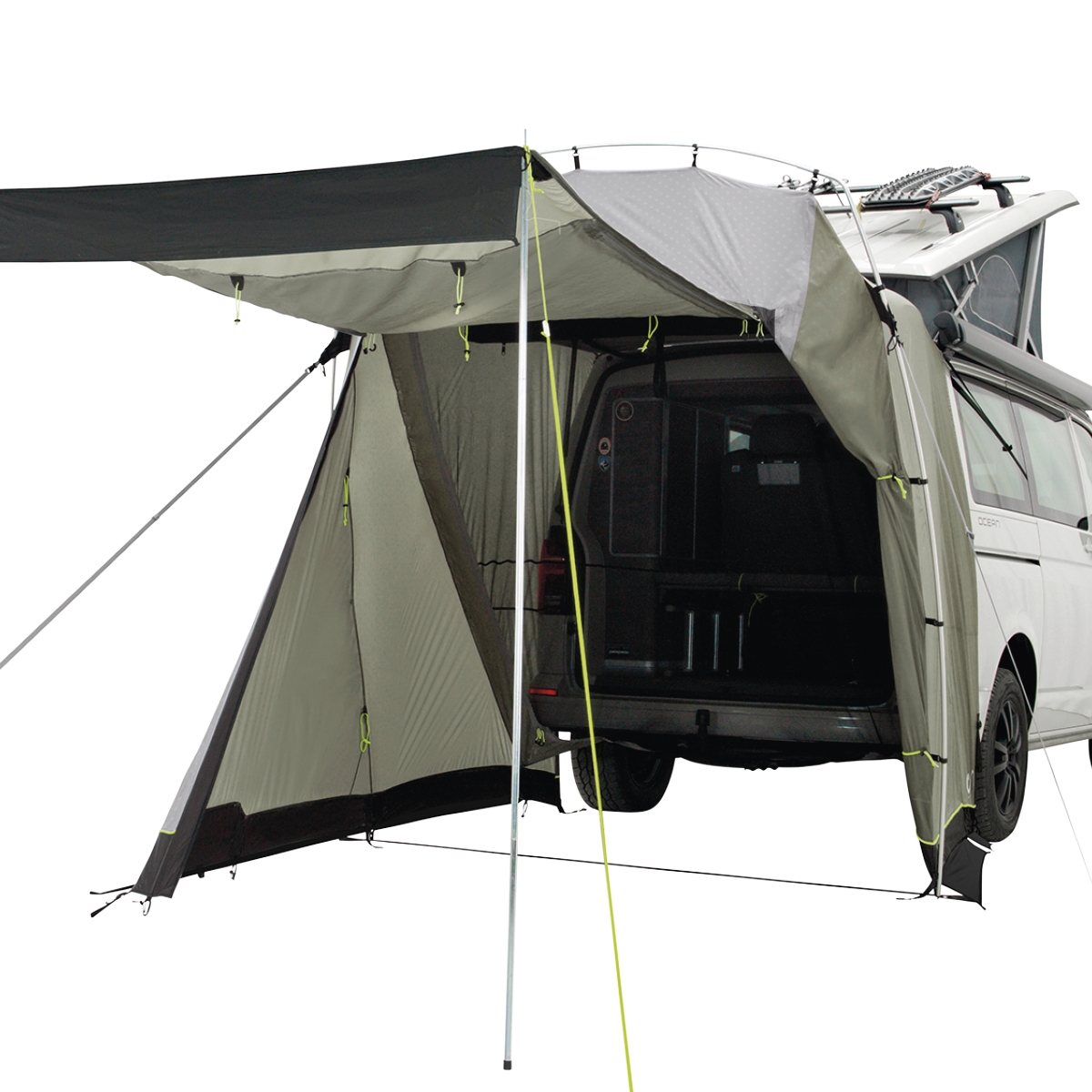 Dette bustelt er designet til fx VW T5/T6/T6.1, MB W639/W447 og lignende campingkøretøjer. Med Vehicle Attachment System monteres teltet nemt på bagklappen uden at blokere sidedørene. Den innovative indvendige myggenetvæg giver mulighed for at sove med åben bagsmæk, mens insekterne holdes ude. Outtex® 3000 Select CARE-polyester med UPF 30+ UV-beskyttelse og 3000 mm vandsøjletryk bidrager til beskyttelse mod forskellige vejrforhold. Både oversejl og mesh er fremstillet af 100 % polyester.