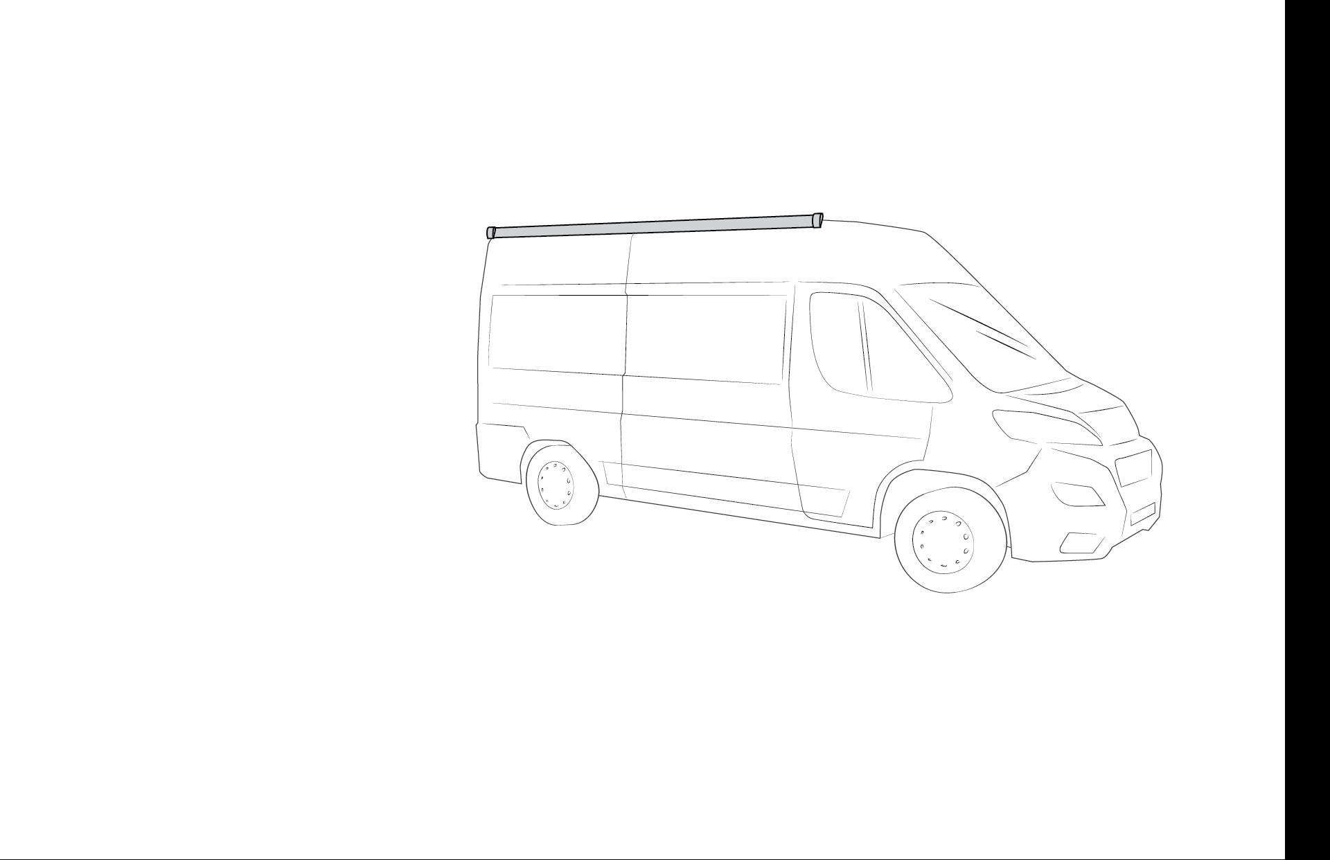 Fits awnings with a depth of 250 cm and a length of 375 cm or more. Typically fitted to vehicles such as: Fiat Ducato, Citroën Jumper/Relay, Peugeot Boxer, Opel/Vauxhall Movano, Mercedes-Benz Sprinter, VW Crafter, MAN TGE, Toyota ProAce Max, Iveco SuperJolly, or similar. Suitable for H2 height and L2, L3 and L4 lengths on the vehicles listed above.