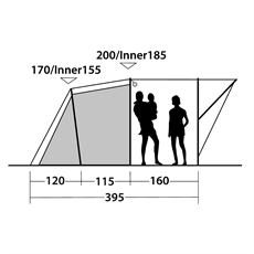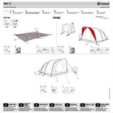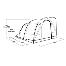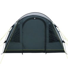 Dette tunneltelt har tre separate rum, der giver plads til op til fem personer. Rumfordelingen skaber områder til både søvn og ophold, hvilket er velegnet til familiecamping og længere ferieture. Teltet har et vandsøjletryk på 3000 mm og UPF 30+ UV-beskyttelse, som bidrager til beskyttelse mod regn og sol. Konstruktionen er designet til at imødekomme forskellige vejrforhold og campingbehov. Materialesammensætningen er 100% polyester til oversejl, indertelt og mesh, hvilket sikrer en ensartet kvalitet og holdbarhed i hele teltet.