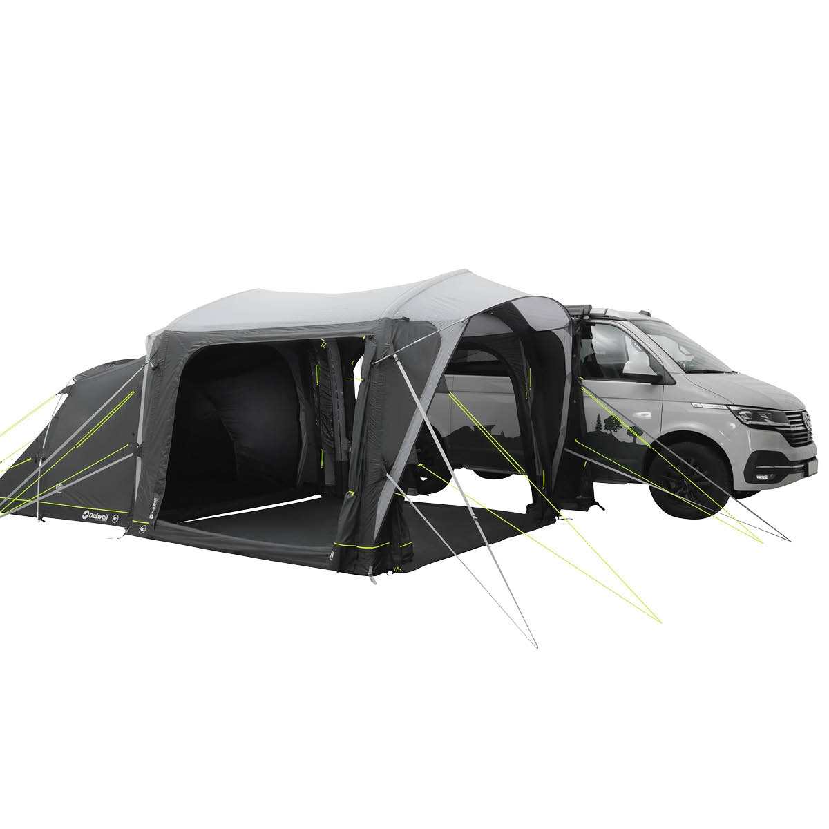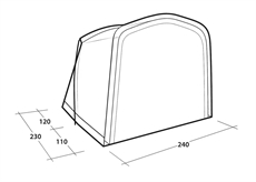 Dette anneks udvider dit Outwell Cross PowerAir-forteltet med soveplads til fire personer. Annexet kan monteres på begge sider af forteltet, hvilket giver fleksibilitet til at tilpasse opsætningen efter campingpladsens layout eller familiens behov. Materialet er Outtex 6000 Express RS-polyester med et vandsøjletryk på 6000 mm, som giver samme vejrbeskyttelse som hovedteltet. Det mørke indre reducerer lysindtrængning om morgenen, hvilket forlænger søvnperioden, når solen står op tidligt. Konstruktionen med Duratec glasfiberstænger i dimensioner 12,7/11 mm giver stabil støtte, mens vægten på 6,7 kg gør annexet transportabelt uden at fylde for meget i bilen. UV-beskyttelsen på UPF 30+ beskytter både materialet og de sovende mod solens stråler under længere ophold.
