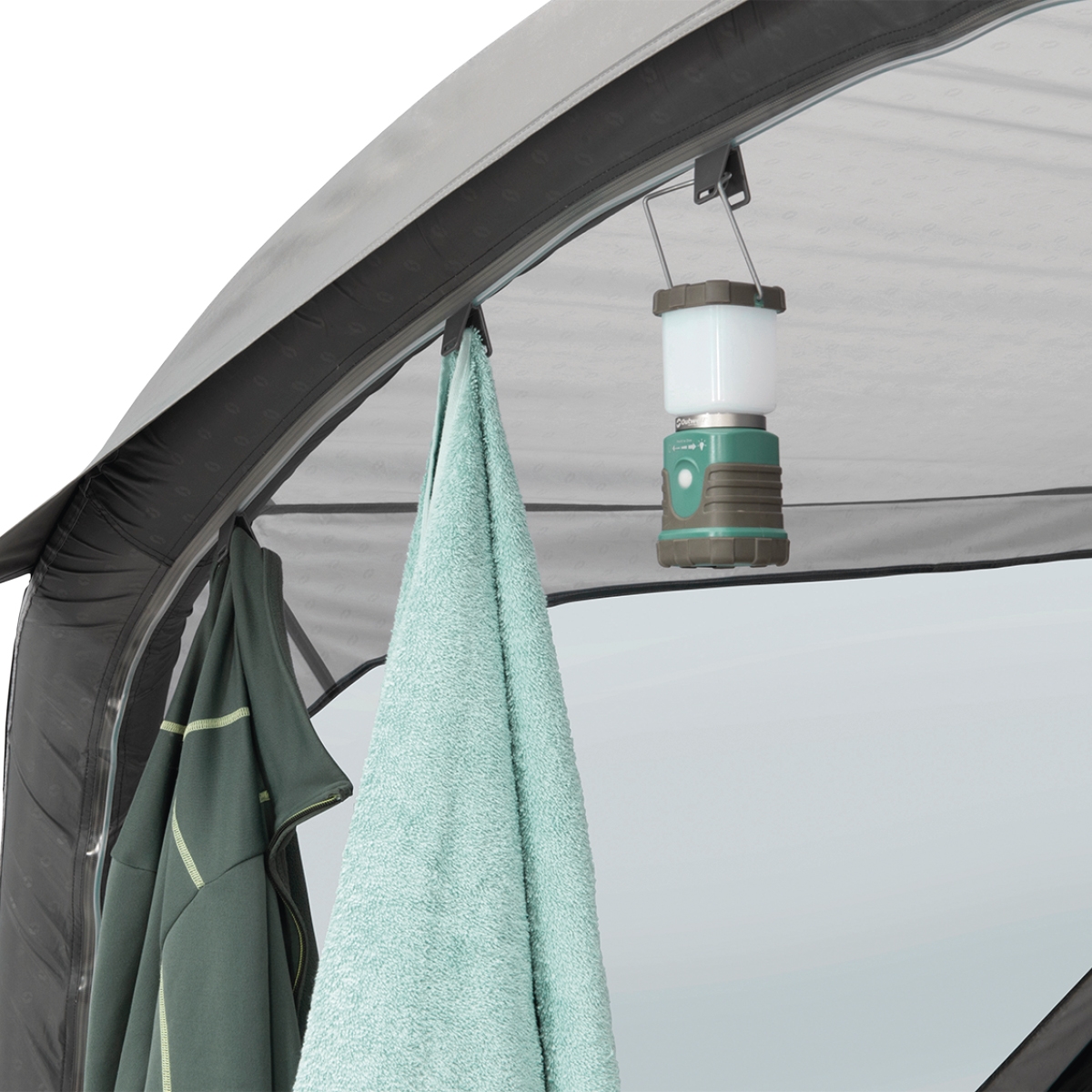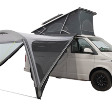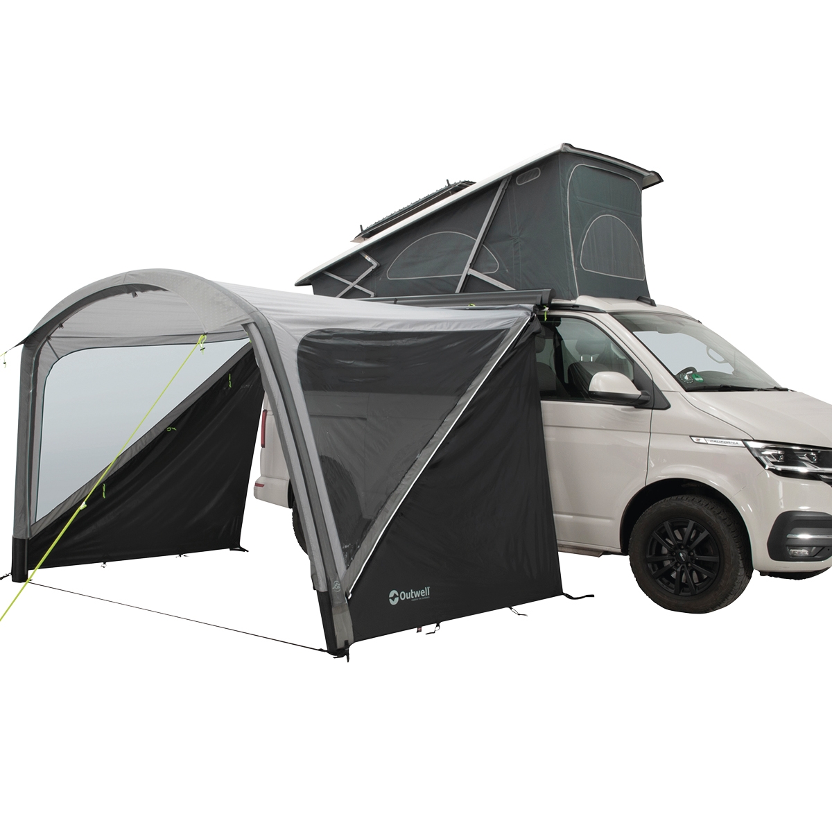 Dette universelle Outwell Touring Shelter er et luft solsejl som giver dig fleksibel beskyttelse mod sol og regn med en vandtæthed på 4.000 mm og UV-beskyttelse (UPF 30+). Luftsystemet med enkeltpunktoppustning gør opsætningen hurtig og nem, selv når du er alene. Den specielt formede luftslange sikrer god ståhøjde, og siderne kan rulles op på varme dage. Med en vægt på 6,4 kg og pakkemål på 62x20x20 cm er det nemt at transportere. Det er velegnet til autocampere, varevogne og campingvogne.