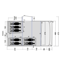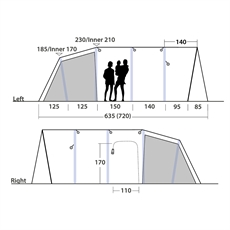 De rummelige Ambassador Master Bedrooms sikrer behagelig søvn, mens det effektive ventilationssystem holder indeklimaet optimalt. Mørke sidepaneler kan hjælpe med at reducere morgenvarmen, hvilket bidrager til en god nats søvn. Den praktiske opdeling giver både fælles opholdsmuligheder og privatliv. Det integrerede Outwell-bagventilationssystem sikrer god luftcirkulation og mindsker kondens. Outwell Nightlight System er inkluderet for at lette orienteringen i teltet om natten.