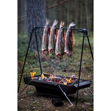 Dette robuste bålfad i 2,5 mm tykt stål giver dig en rummelig madlavningsstation med 50 liters kapacitet - ideelt når du skal lave mad til større grupper på campingturen. De aftagelige støtteben sikrer stabil placering på ujævnt terræn i skoven eller haven, samtidig med at de beskytter underlaget mod varme. Den rektangulære form med skrånende sider optimerer luftcirkulationen, hvilket giver en jævn varmefordeling under madlavningen. Med en bæreevne på hele 100 kg kan du trygt tilberede flere retter samtidigt, og bagekammeret giver dig mulighed for at eksperimentere med forskellige madlavningsteknikker.